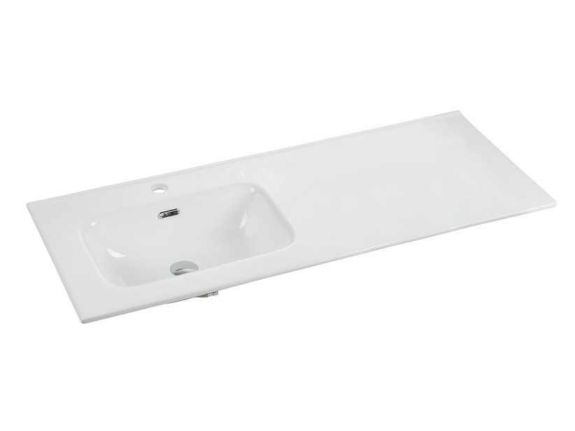 AVIVO : LAVABO UNITOP 121x46 cm avec vasque à gauche - trou pour le trop-plein et trou pour le mitigeur - en céramique blanc brillant