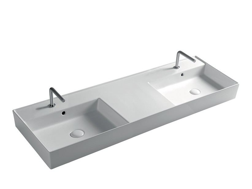 Lavabo Unitop Twenty double vasque 141x46 cm blanc brillant