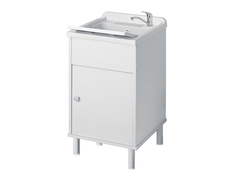 UNIKO meuble de buanderie en kit à monter 45x50xH85 cm, plan de lavage inclus, adapté aux environnements humides et aux extérieurs/terrasses - PVC blanc.