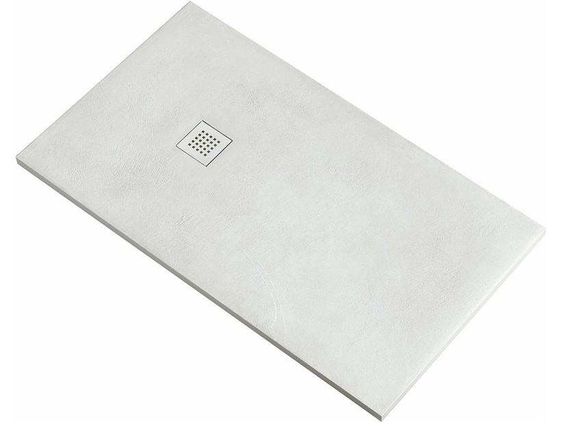 CEMENTO Receveur de douche cm 140x80 H3 en résine effet béton brossé - grille cache-bonde inox ton sur ton incluse (bonde non incluse) - finition blanc mat