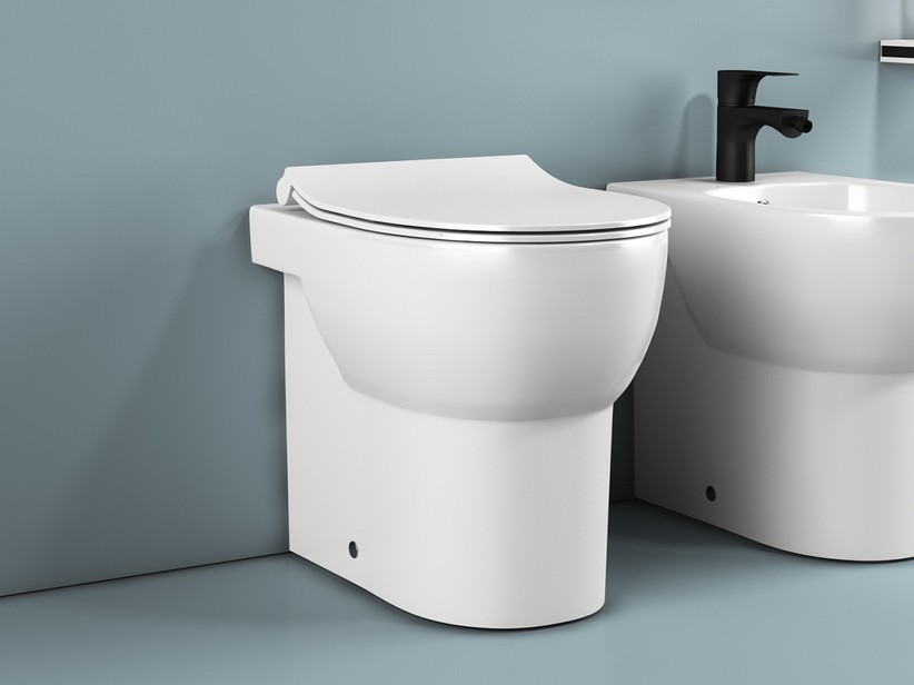 WC à poser adossé au mur Astra avec abattant Slim Soft-Close blanc brillant