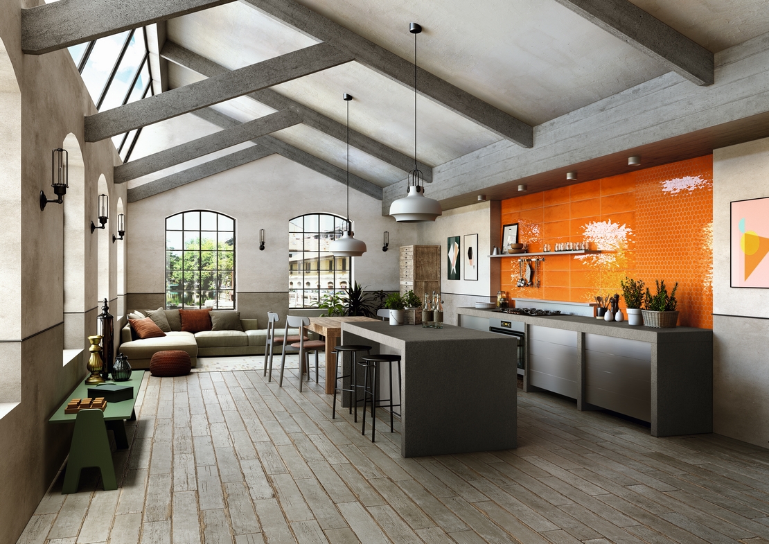 La grande variété de finitions disponibles invite à combiner deux types de matériaux différents. Quelques exemples ? Dans les espaces ouverts, un choix très courant alliant esthétique et praticité est celui des carreaux hexagonaux en grès cérame avec des lames de parquet (ou de parquet stratifiéLes premières couverts dans la zone opérationnelle et donc sujette à se salir de la cuisine, les seconds dans la zone de vie. Pour un résultat plus intéressant et fini, le parquet est découpé de manière à s'insérer parfaitement à l'intérieur de la forme créée par les hexagones. Un approche similaire peut être adoptée avec des carreaux hexagonaux en grès effet marbre et des lames en grès effet bois. Dans ce cas également, le grès est découpé de manière à s'aligner avec les hexagones.