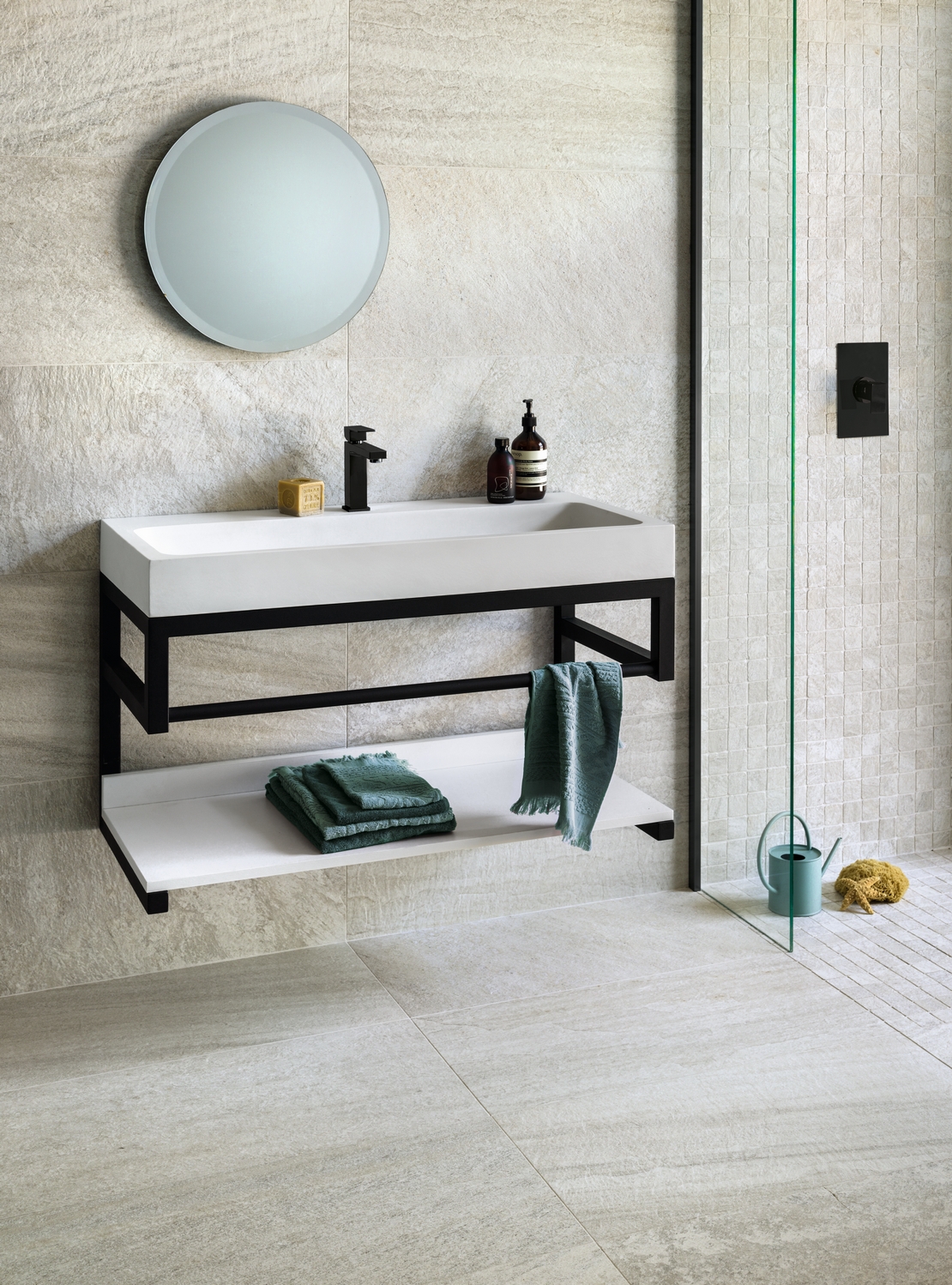 Tous les matériaux impliqués dans la conception de la salle de bain dialoguent entre eux, un dialogue qui rythme et détermine le style global de l'environnement et les états d'esprit qu'il suscite chez ceux qui y vivent. Si l'objectif est de créer un contexte apaisant et rassurantPour la douche en maçonnerie, l'option recommandée est de choisir le même matériau et la même couleur que ceux utilisés pour les autres murs. En changeant uniquement le format : du mosaïque pour la douche et un format plus grand pour les autres murs. Ce qui fait la différence dans ce cas, c'est la géométrie des carreaux, la forme hexagonale mise en évidence par les joints : la douche s'intègre dans la salle de bains de manière discrète et douce, tout en restant un élément distinct, avec son propre revêtement spécifique.